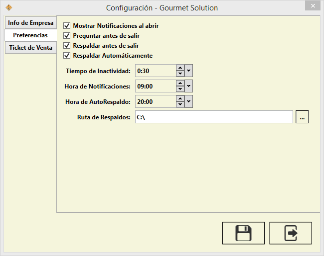 - Personalización de tickets de venta.