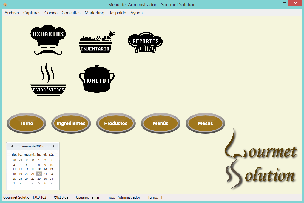- Menús de Administrador, Cajero, Mesero, Capturista o Cocinero.